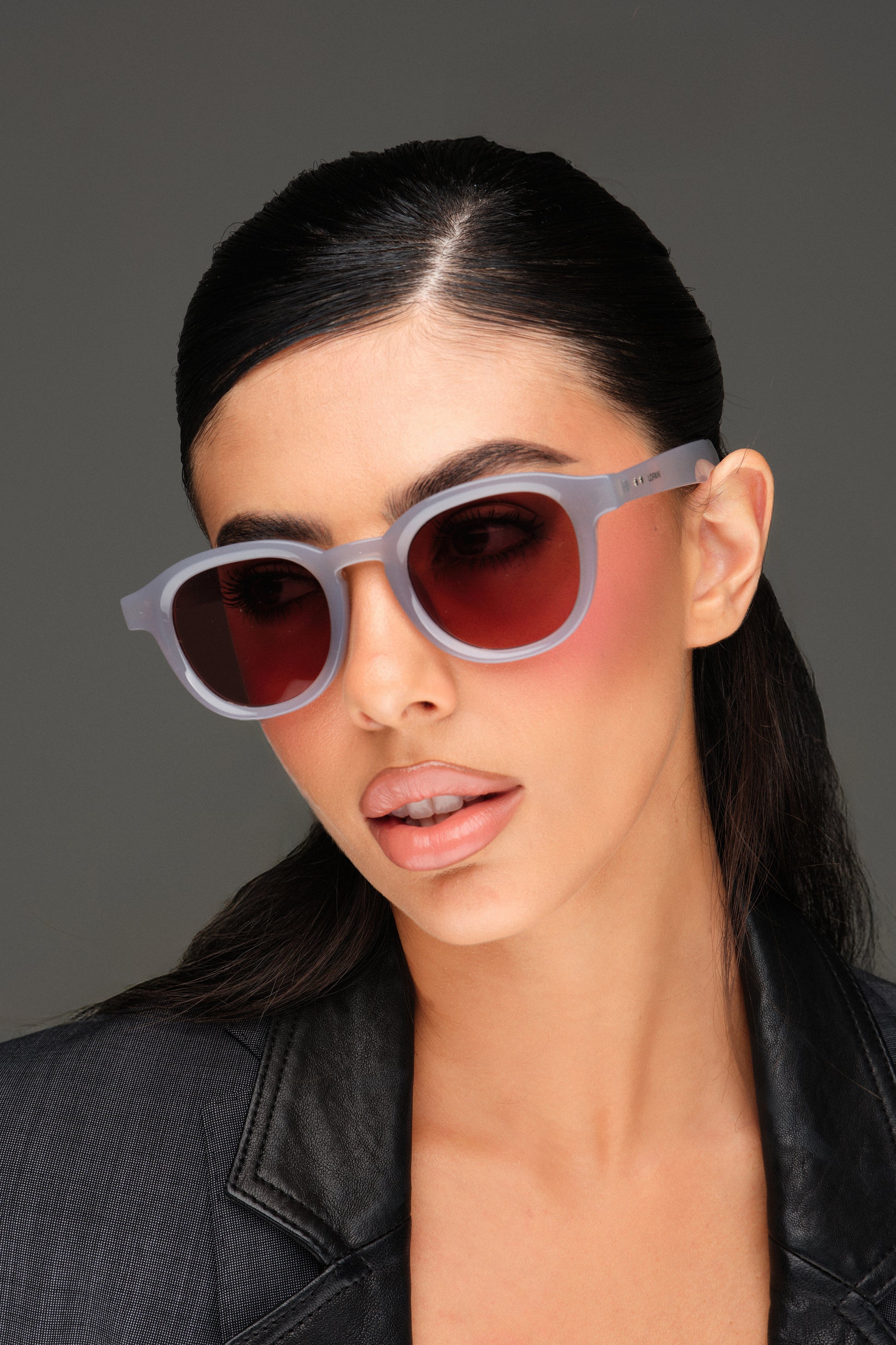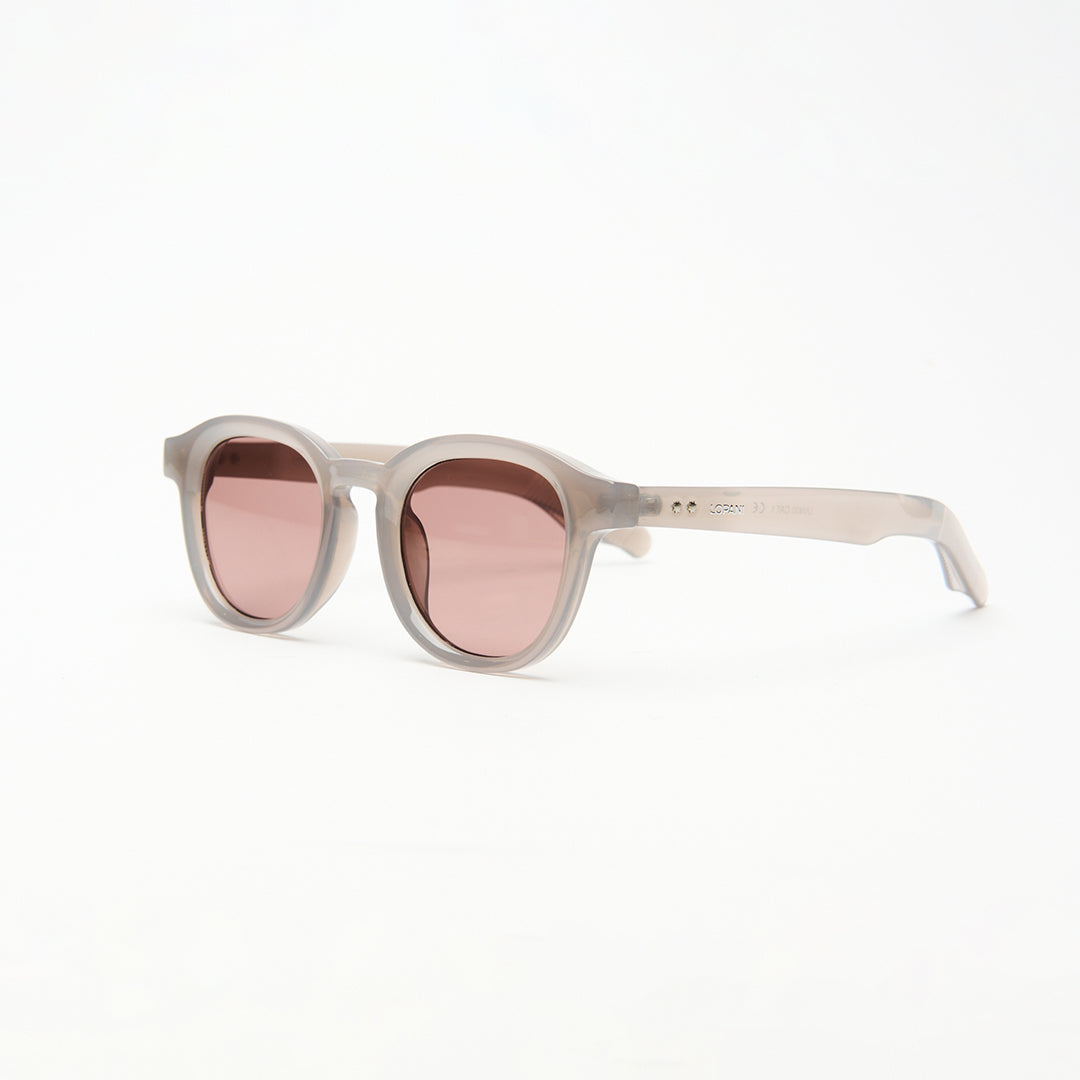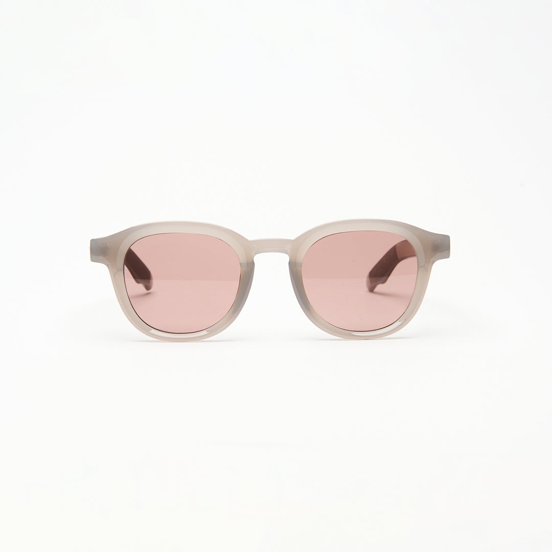 Occhiali da sole unisex con montatura trasparente opaca color sabbia e lenti rosa. Il design arrotondato e minimal offre uno stile moderno e raffinato, mentre la finitura soft-touch dona un aspetto elegante e contemporaneo. Perfetti per un look leggero, fresco e di tendenza.