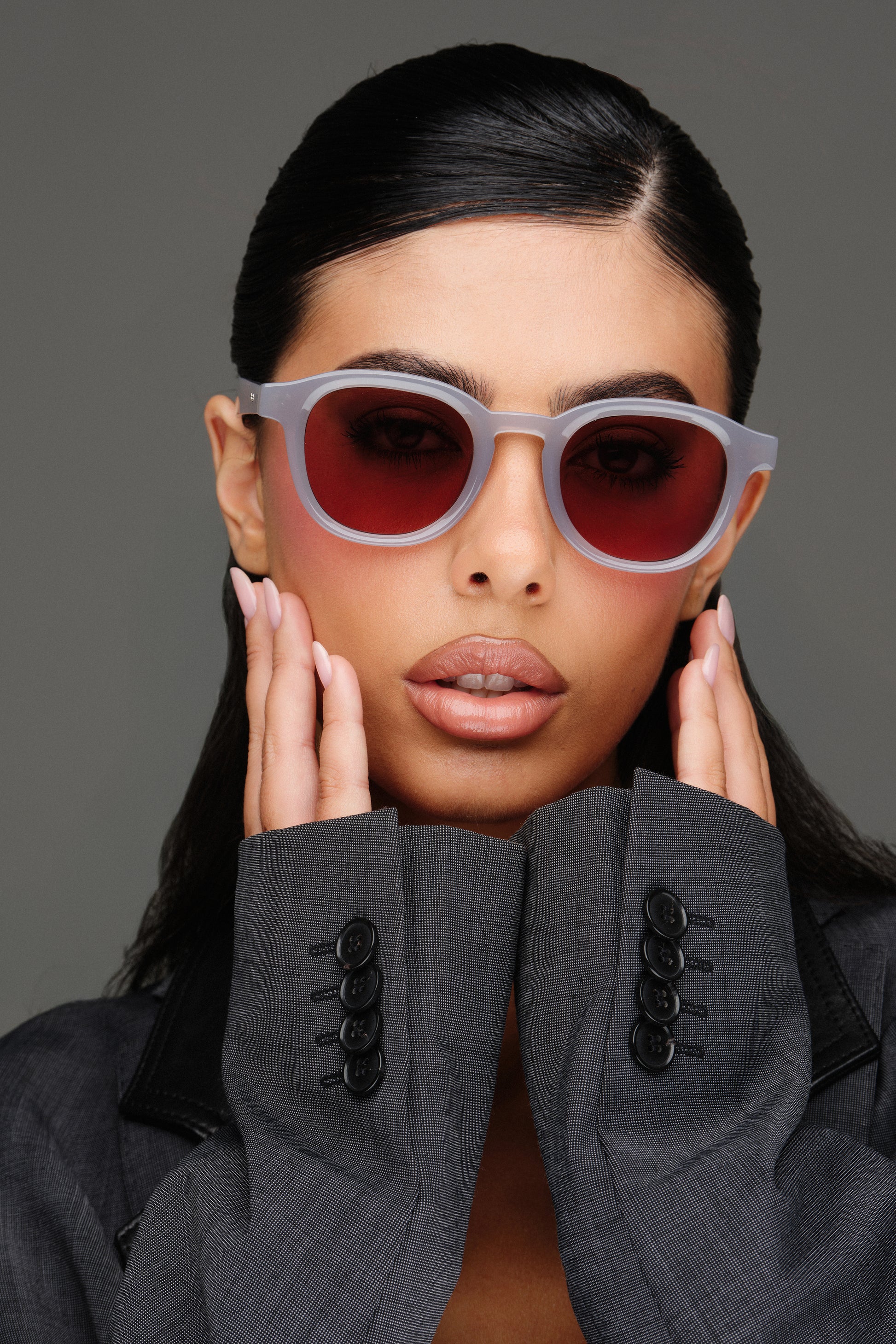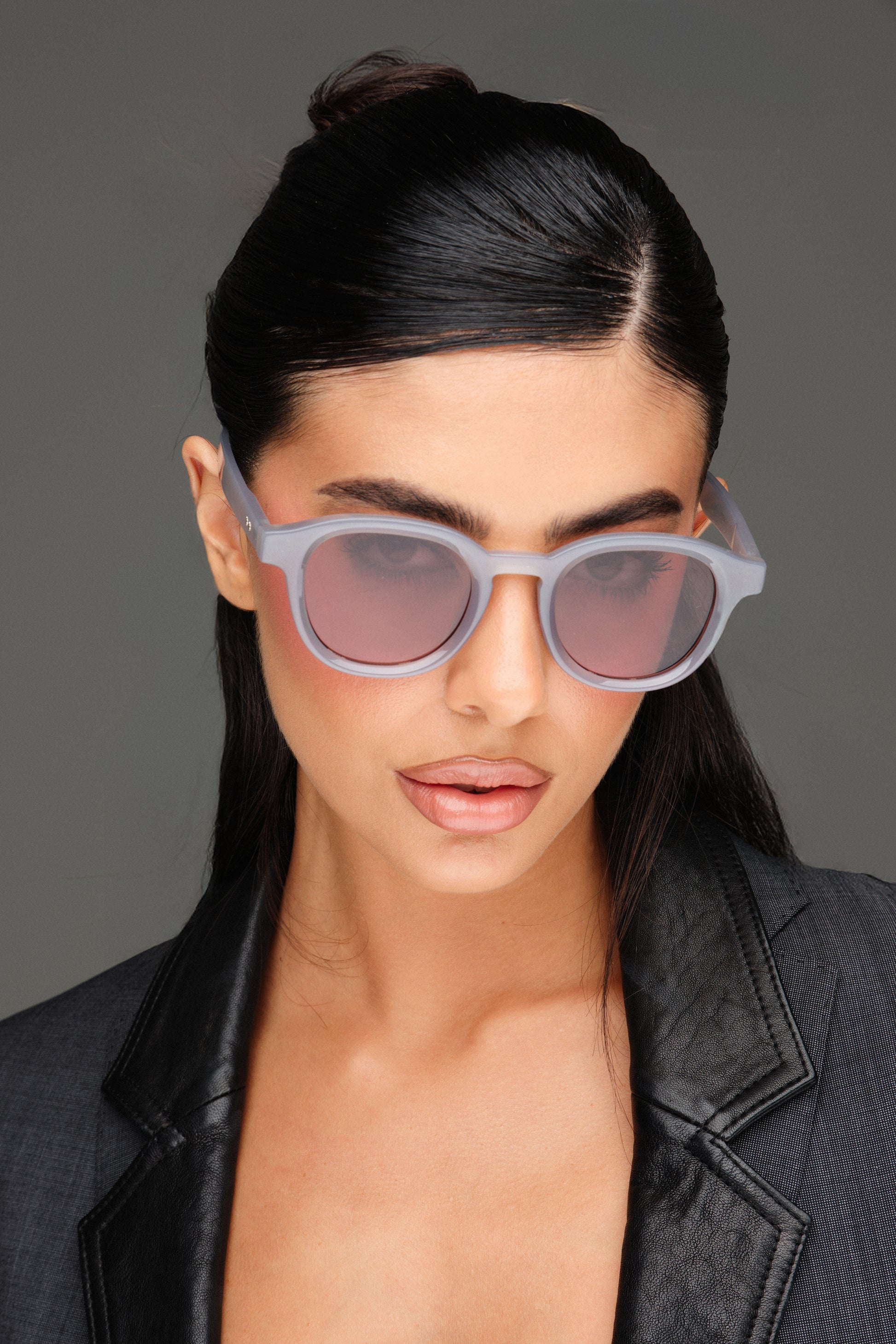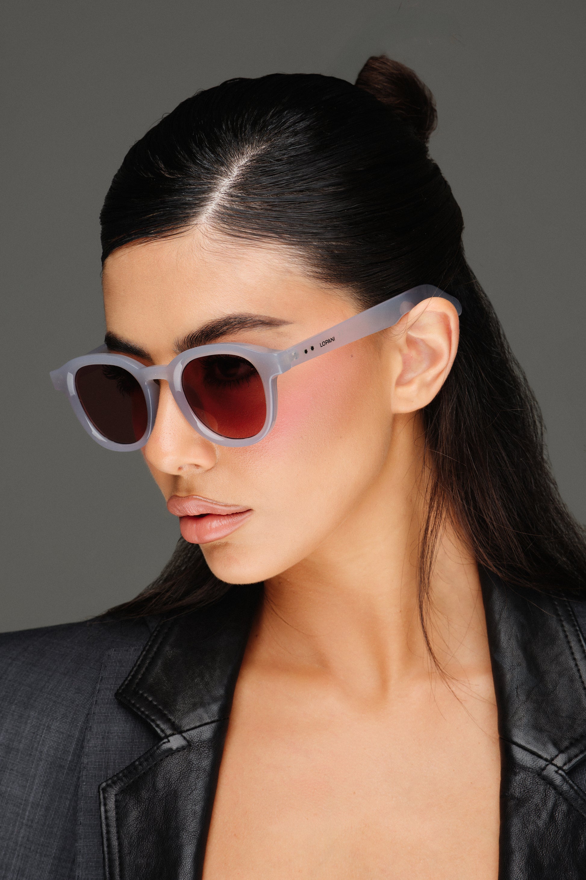 Occhiali da sole unisex con montatura trasparente opaca color sabbia e lenti rosa. Il design arrotondato e minimal offre uno stile moderno e raffinato, mentre la finitura soft-touch dona un aspetto elegante e contemporaneo. Perfetti per un look leggero, fresco e di tendenza.