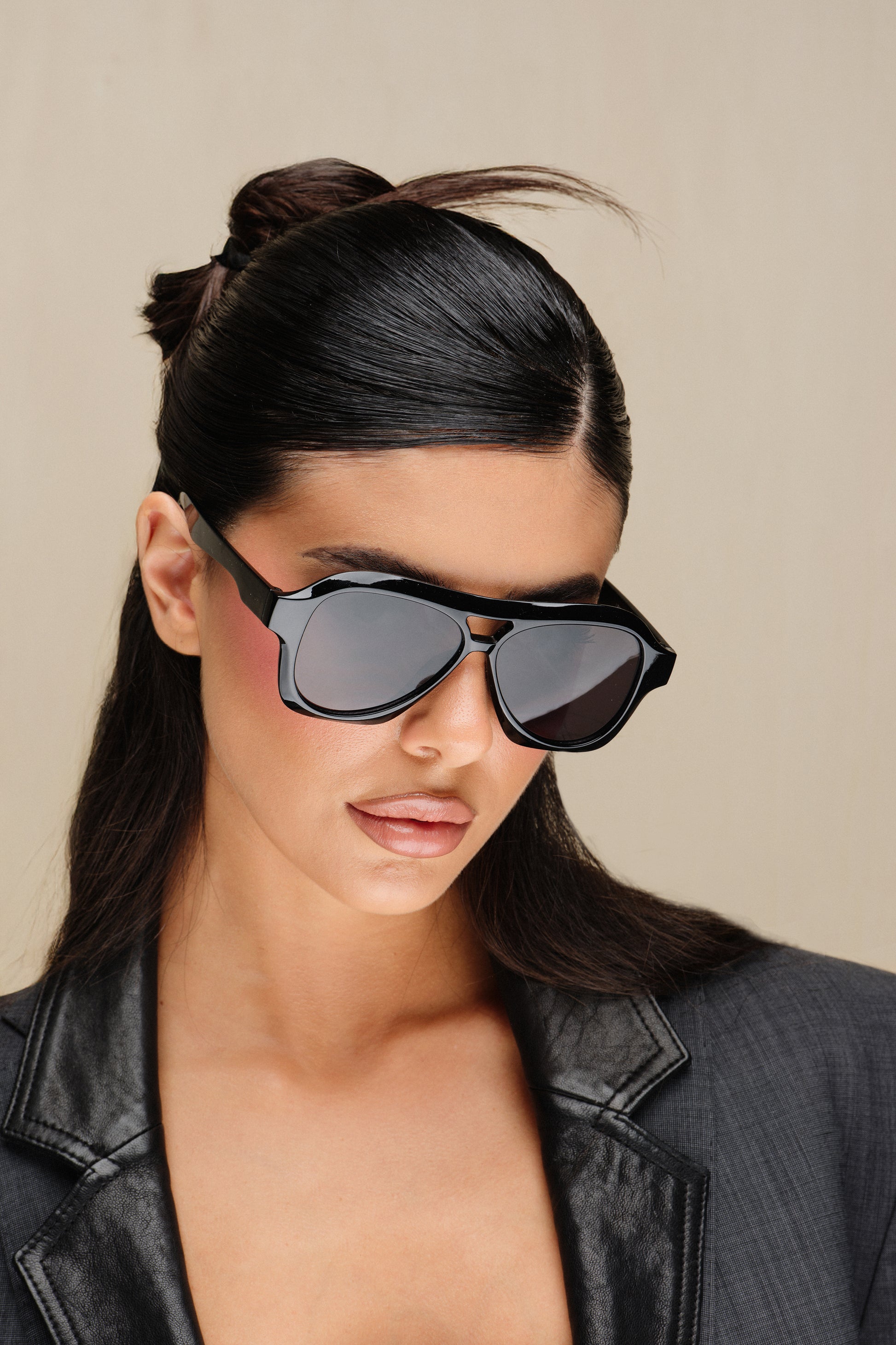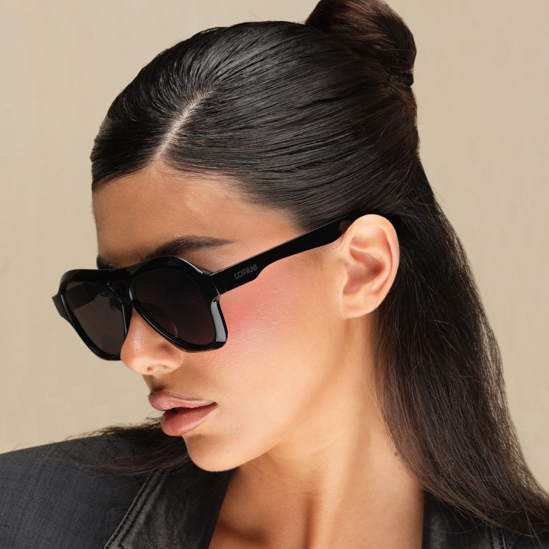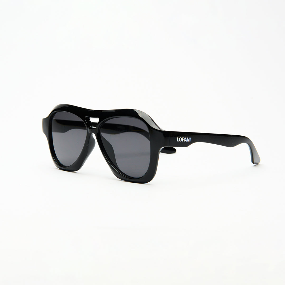 Occhiali da sole unisex con montatura nera lucida e lenti grigio scuro. Il design avvolgente in stile aviator moderno offre un look deciso e contemporaneo, mentre la struttura robusta garantisce comfort e stabilità. Ideali per uno stile urbano e versatile da indossare ogni giorno.
