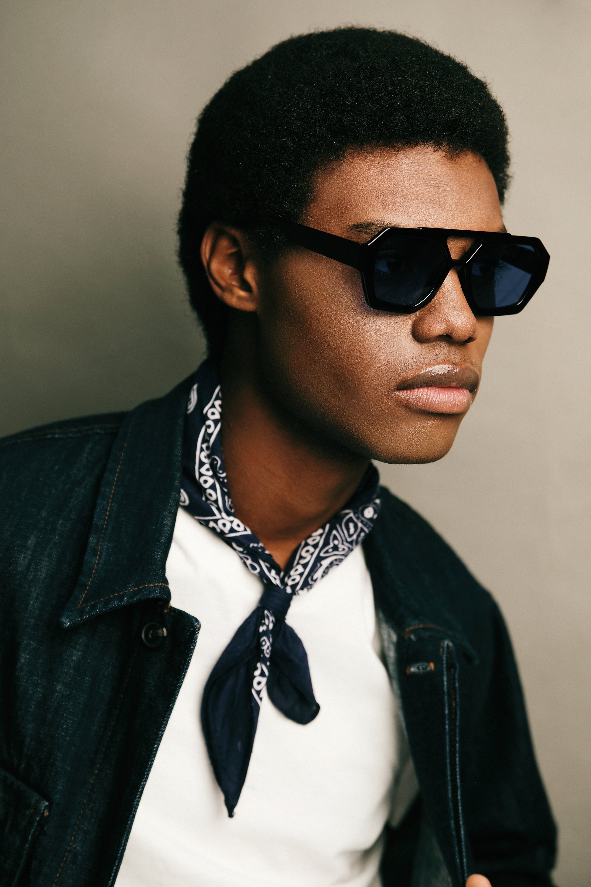 Occhiali da sole unisex con montatura nera geometrica e lenti blu. Il design squadrato e moderno, caratterizzato dal ponte superiore aperto, offre uno stile audace e contemporaneo. Perfetti per chi vuole distinguersi con un look deciso e ricco di personalità.